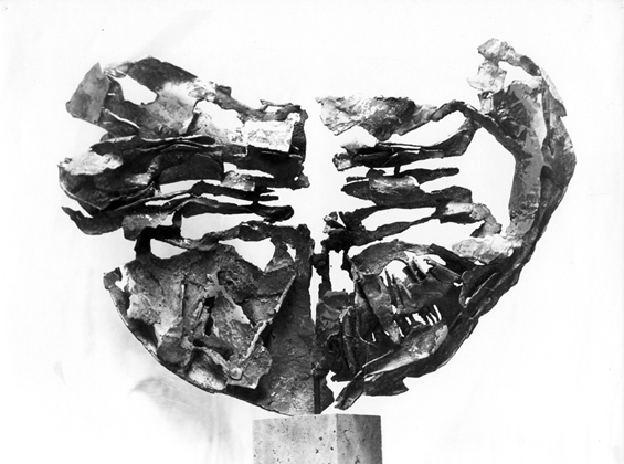 "La mort lente a tortured sculpture composed of suspended spirals -symbolizes life’s withdrawal from itself."
